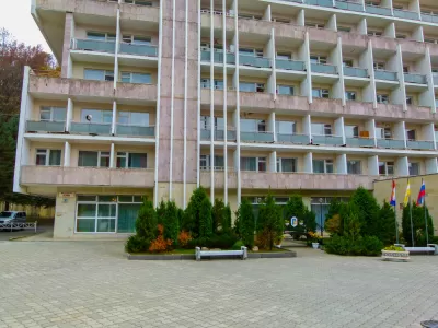 - Спальный корпус № 4 – 12-ти этажное здание. Является главным корпусом здравницы. Здание оборудовано лифтами.