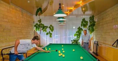 Отдохнуть в санатории можно, посетив климатплощадку, и принять там солнечную ванну. В комнате с настольными играми сразиться в партию шахмат. Сыграть в бильярд. Активно подвигаться на спортивной площадке. Позаниматься в тренажерном зале. И, в завершении всего, выпить чашечку кофе в замечательной Кофейне.