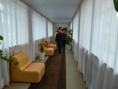 Нет, в санатории «им. Димитрова» основной корпус 4 нрасположен отдельно, а корпуса 2 и 3 между собой соединены крытым переходом.