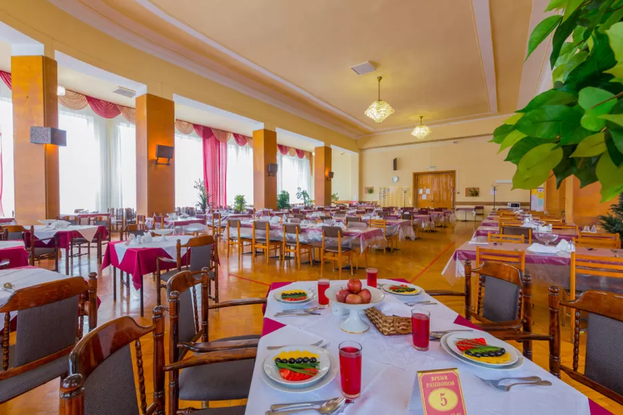 3-разовое питание по системе «меню-заказ». Осуществляется в столовых №1 и №2 на территории санатория.